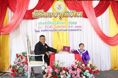 วันที่ 21 เมษายน 2569 เวลา 08.30 น. นายนิพันธ์ แวยูโซ๊ะ นายกองค์การบริหารส่วนตำบลฆอเลาะ พร้อมด้วยนางกนกวรรณ สะแปอิง,ร.ต.ต.ยูโซ๊ะ อาแด รองนายกองค์การบริหารส่วนตำบลฆอเลาะ และสมาชิกสภาองค์การบริหารส่วนตำบลฆอเลาะ เข้าร่วมเป็นเกียรติในพิธีมอบประกาศนียบัตรแห่งความสำเร็จ และกิจกรรมบัณฑิตน้อย ประจำปีการศึกษา 2568 ของนักเรียนระดับชั้น อ.1 ศูนย์พัฒนาเด็กเล็กบ้านตำเสา และศูนย์พัฒนาเด็กเล็กบ้านกีแยมัส โดยมีนายนิพันธ์ แวยูโซ๊ะ นายกองค์การบริหารส่วนตำบลฆอเลาะ เป็นประธานและผู้มอบวุฒิบัตรให้แก่ผู้สำเร็จการศึกษา และมีนายอาฮามะ สาและ กำนันตำบลฆอเลาะ พร้อมด้วยนายนูเด็ง อูมา ผู้ใหญ่บ้าน ม.4 บ้านกีแยมัส ร่วมแสดงความยินดีกับผู้สำเร็จการศึกษาในกิจกรรมดังกล่าว ณ อาคารอเนกประสงค์ ม.1 บ้านบางขุด ต.ฆอเลาะ อ.แว้ง จ.นราธิวาส